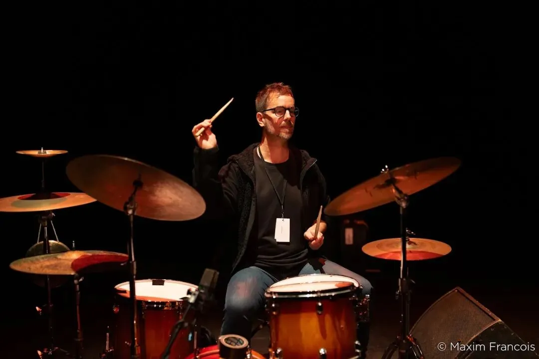 After a broad musical training in Paris and New York, where encounters with musicians such as Jim Black, Ralph Alessi, Tyshawn Sorey and Marc Ducret left their mark, he has played in formations ranging from reggae and rock to contemporary jazz. Today he divides his energy between many projects, among them Dune with Fanny Ménégoz, the Orchestre National de Jazz (Fred Maurin), Big Four (Julien Soro), Tikkun and Anti Rubber Brain Factory (Yoram Rosilio), Odyssée 808 (Enzo Carniel – Maciek Lasserre), Free Flow & Fly (Andrew Crocker) and collaborations with François Puyalto. His playing is driven by curiosity, openness and a search for collective resonance.