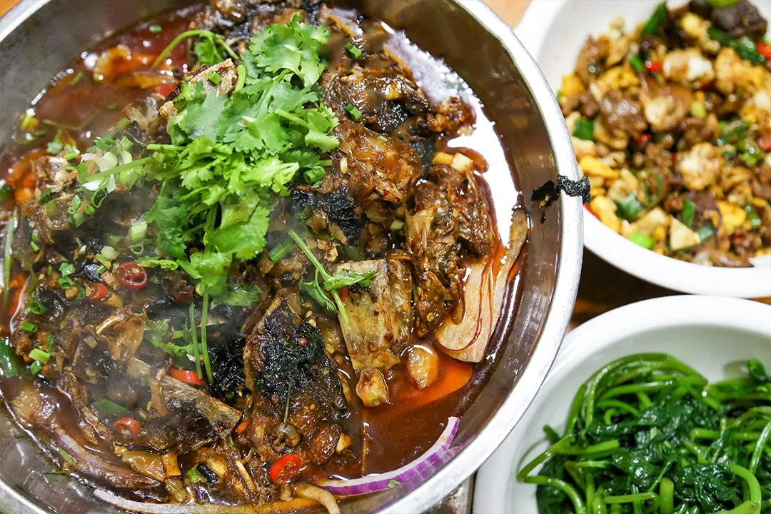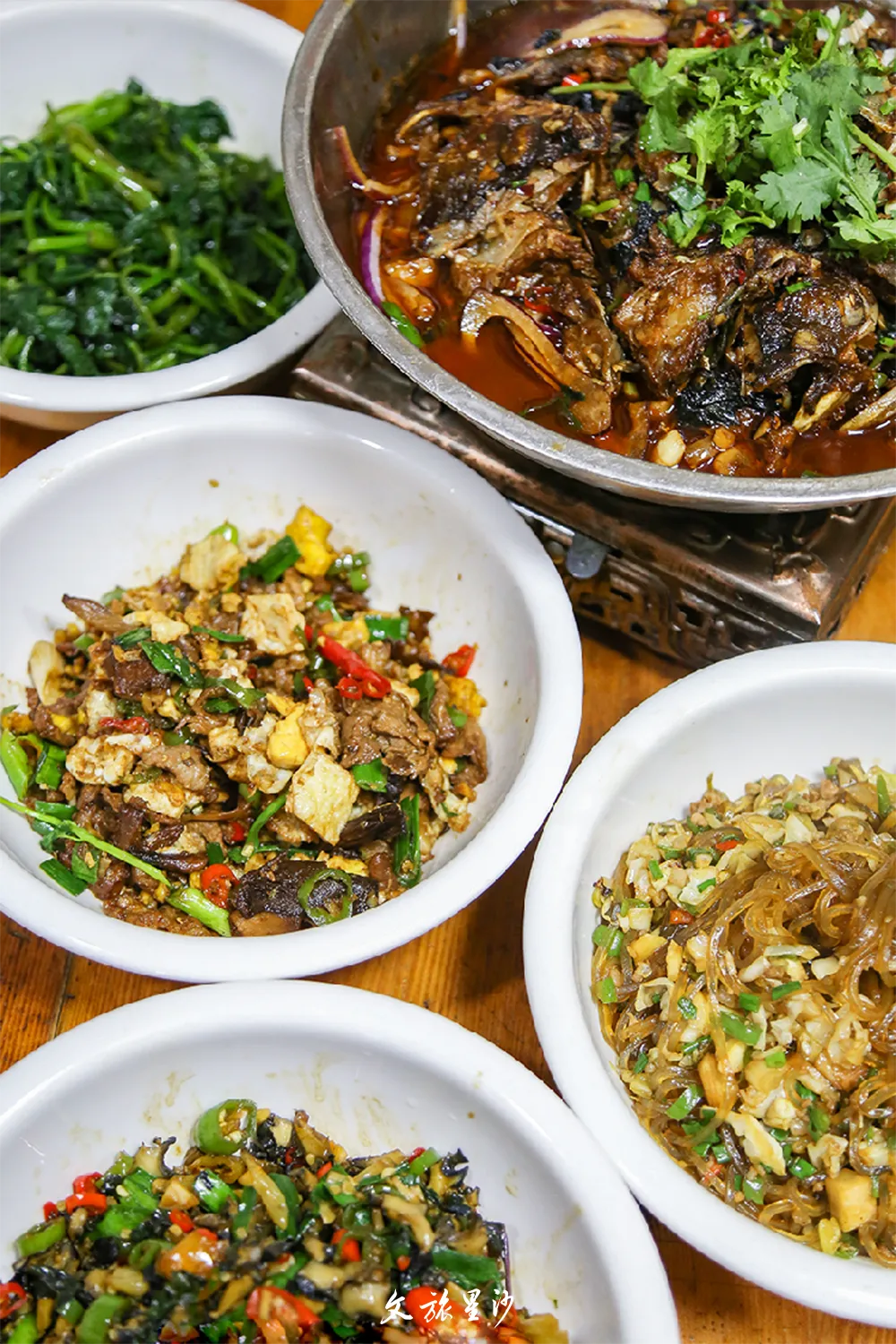 推荐:江背牛杂火锅、醋炒蛋、黄焖洄渡鱼等