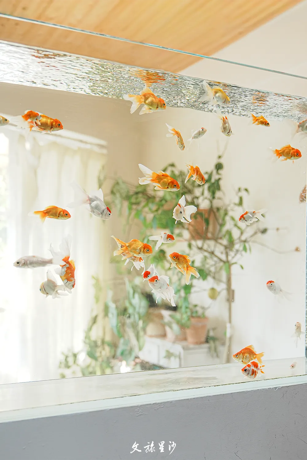 山水人家二期附近,一个两层楼的治愈系空间。一楼门口绿植满满,生机盎然,随手一拍都自带清新滤镜。最出片的是那缸金鱼,水质清澈,几尾金鱼悠闲游弋,氛围感直接拉满。
