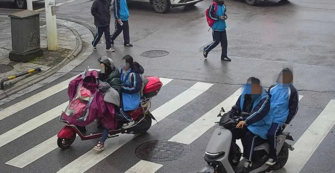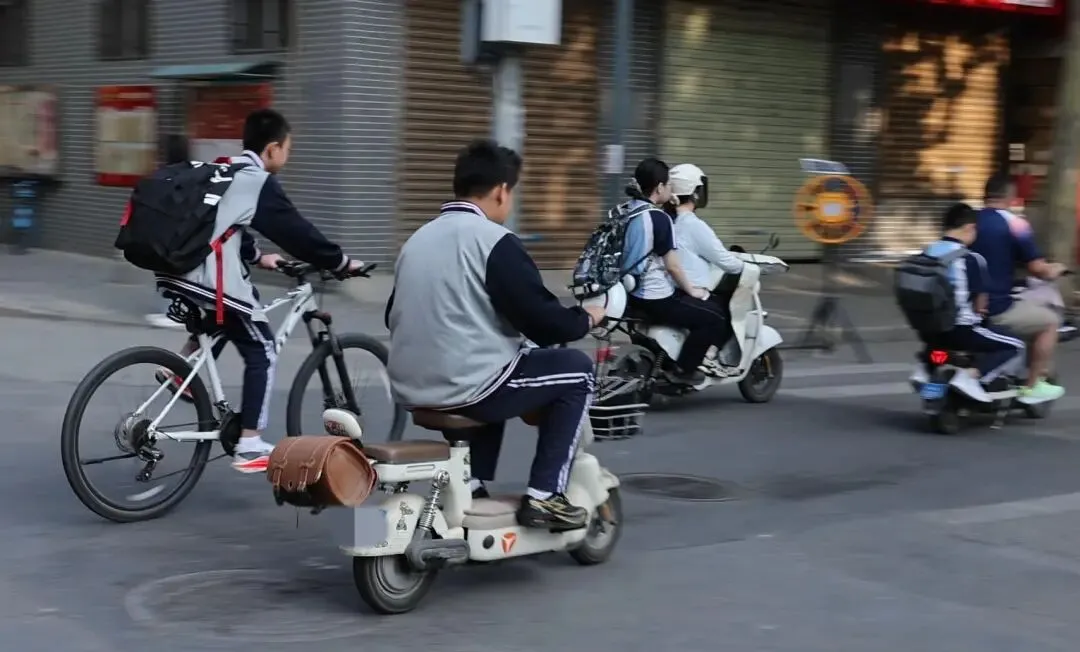 不少学生骑电动车的危险行为,