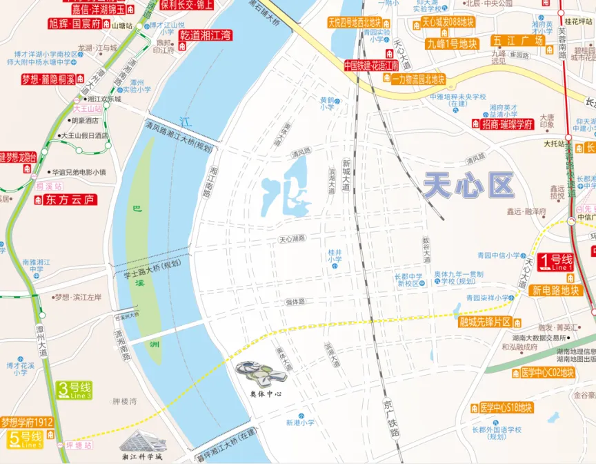从毛竹塘向南串联中信广场、湘雅天心院区、大托铺,直达奥体中心核心区,可换乘1号线、城际、7号线,打通南部融城交通脉络,市区地铁直达全运主场馆,零换乘无缝衔接。