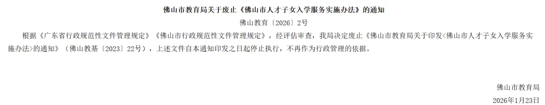 据了解,全国也有多个城市取消了人才子女入学优待政策,如佛山: