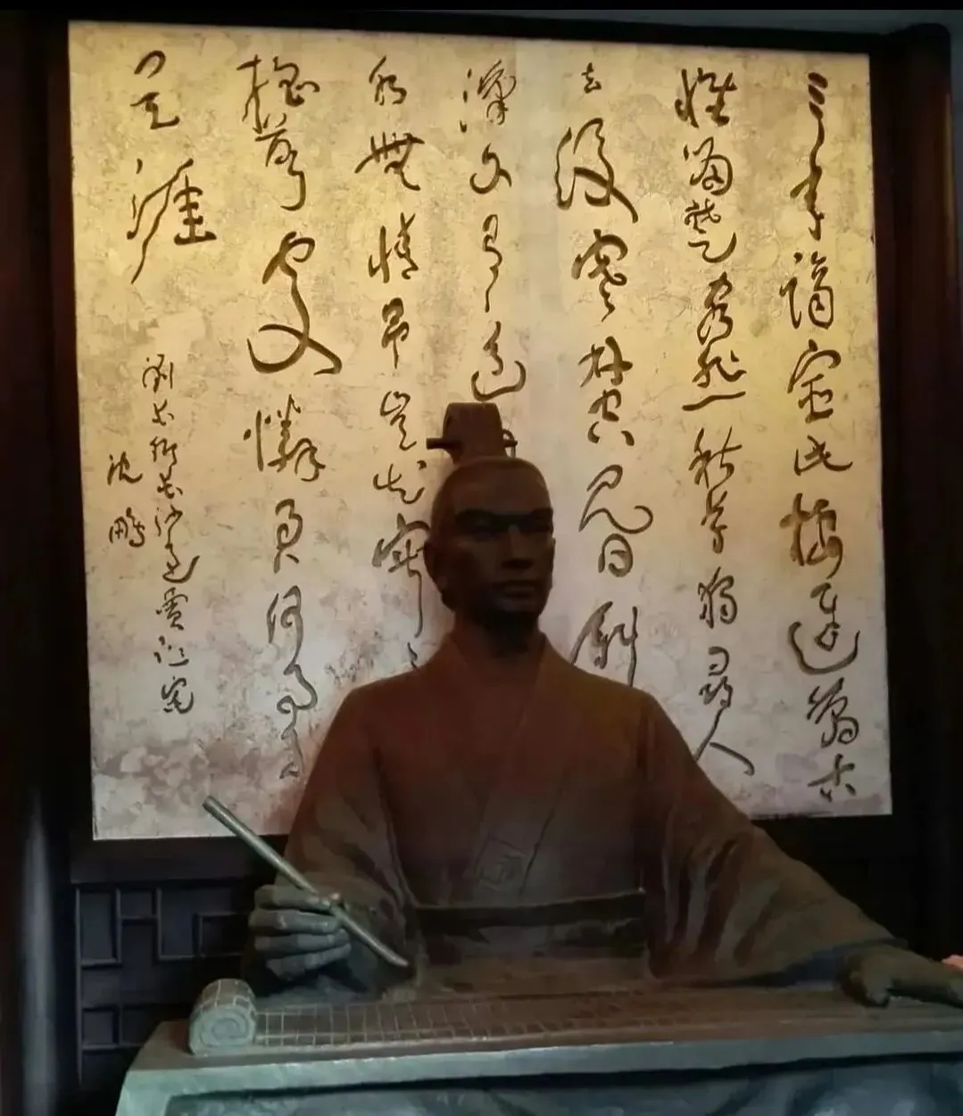 随着缓缓的人流,我凝视贾谊手执毛笔的坚毅雕像,品读墙壁上高悬的鸿篇巨著,欣赏历代名人留下的刻碑,我感慨万千,叹息不已。