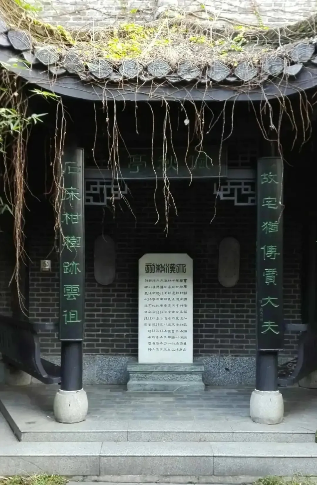 "千古祠宇巍然在,多少文人拜下风!"跨进故居大门,挂在柱子上的牌匾赫然在目,令我顿生崇敬之情。