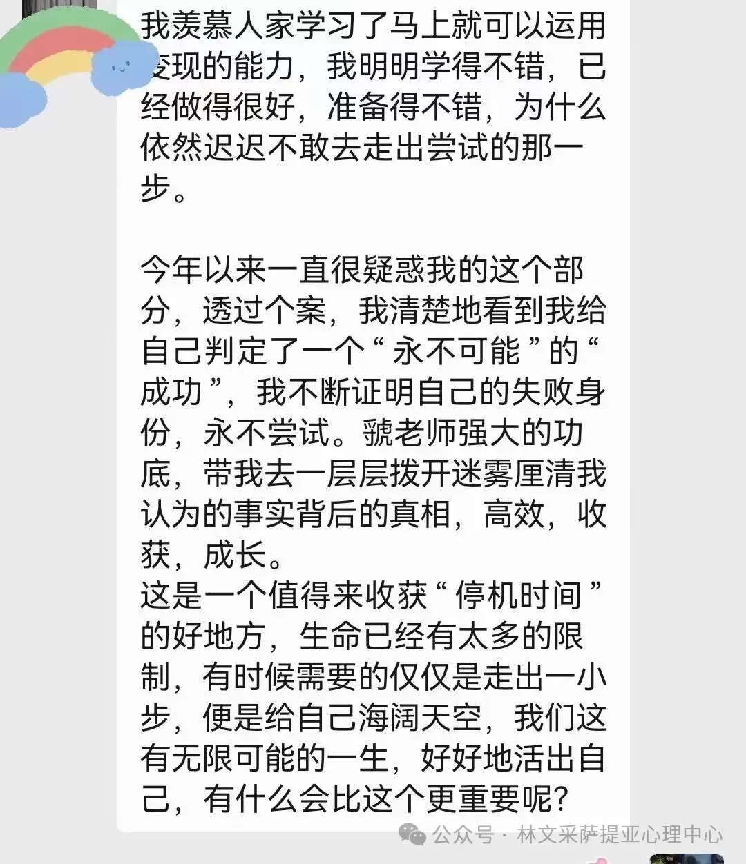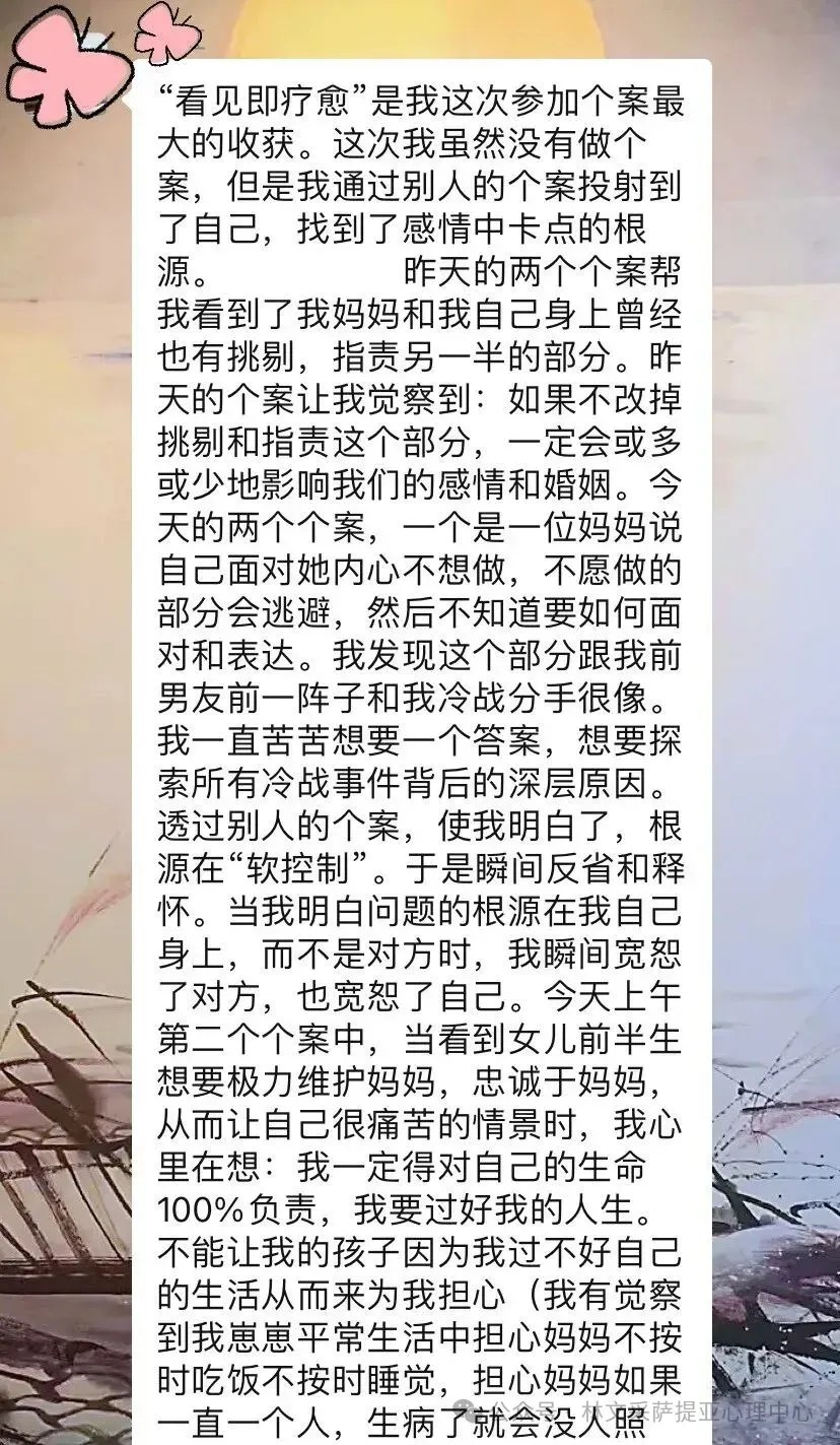 来自不同背景的学员分享,将让您在共鸣中汲取力量,在启发中找到方向。每一个故事,都是一次心灵的触动,每一次分享,都是一次成长的契机。