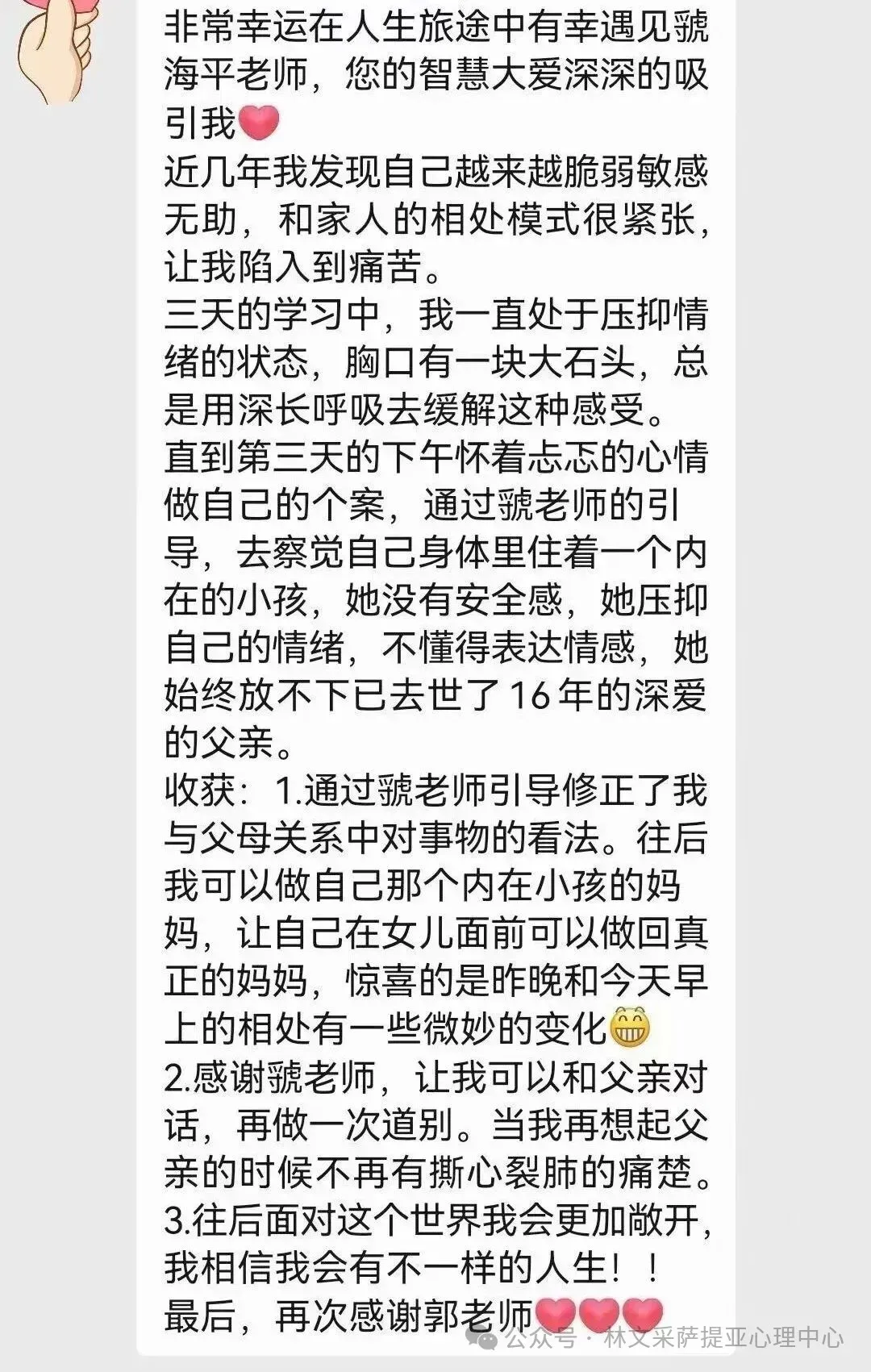 虢海平老师以其深厚的心理学功底和敏锐的洞察力,通过个案疗愈展示,带您深入探索内心的世界。无论是夫妻关系的纠葛、亲子教育的困惑、自我成长的迷茫,还是原生家庭的伤痛,都能在这里找到答案,实现心灵的疗愈与成长。
