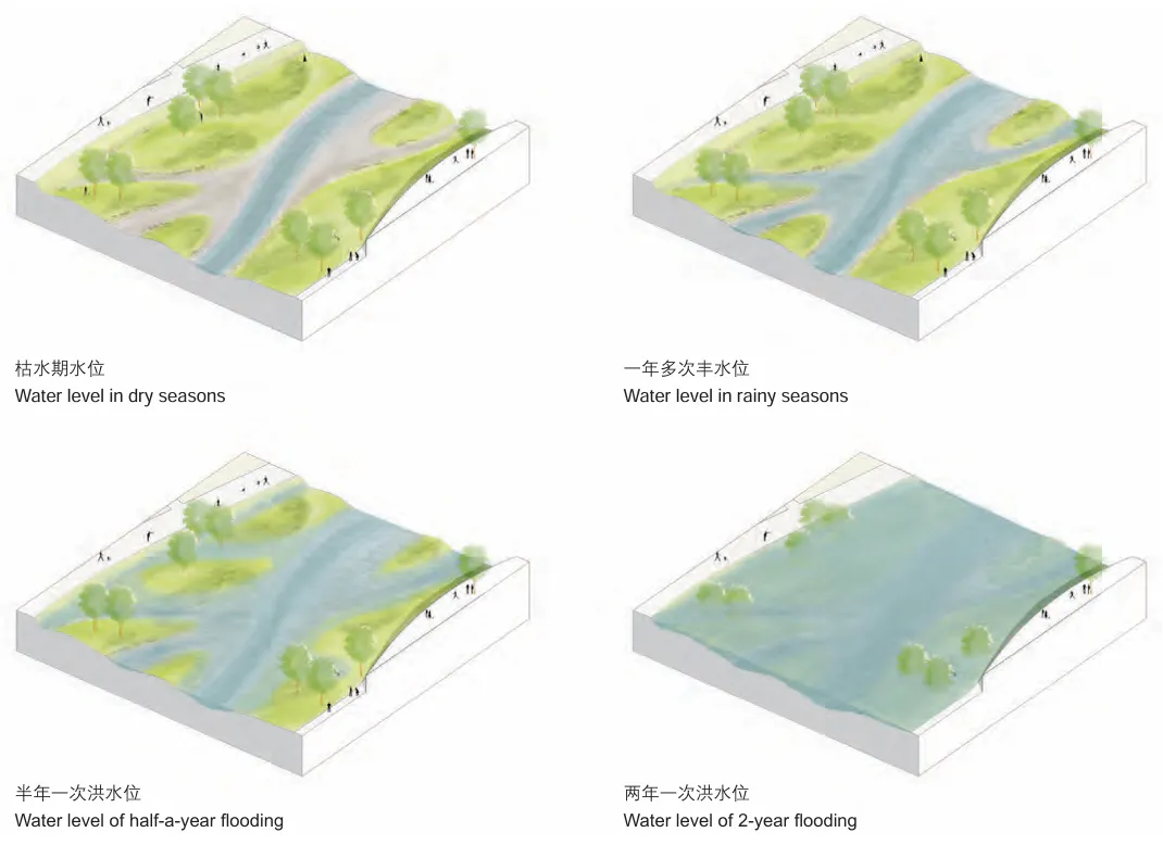 设计充分考虑季节性有水、间歇性行洪特征,打造耐淹、低维护、近自然景观。