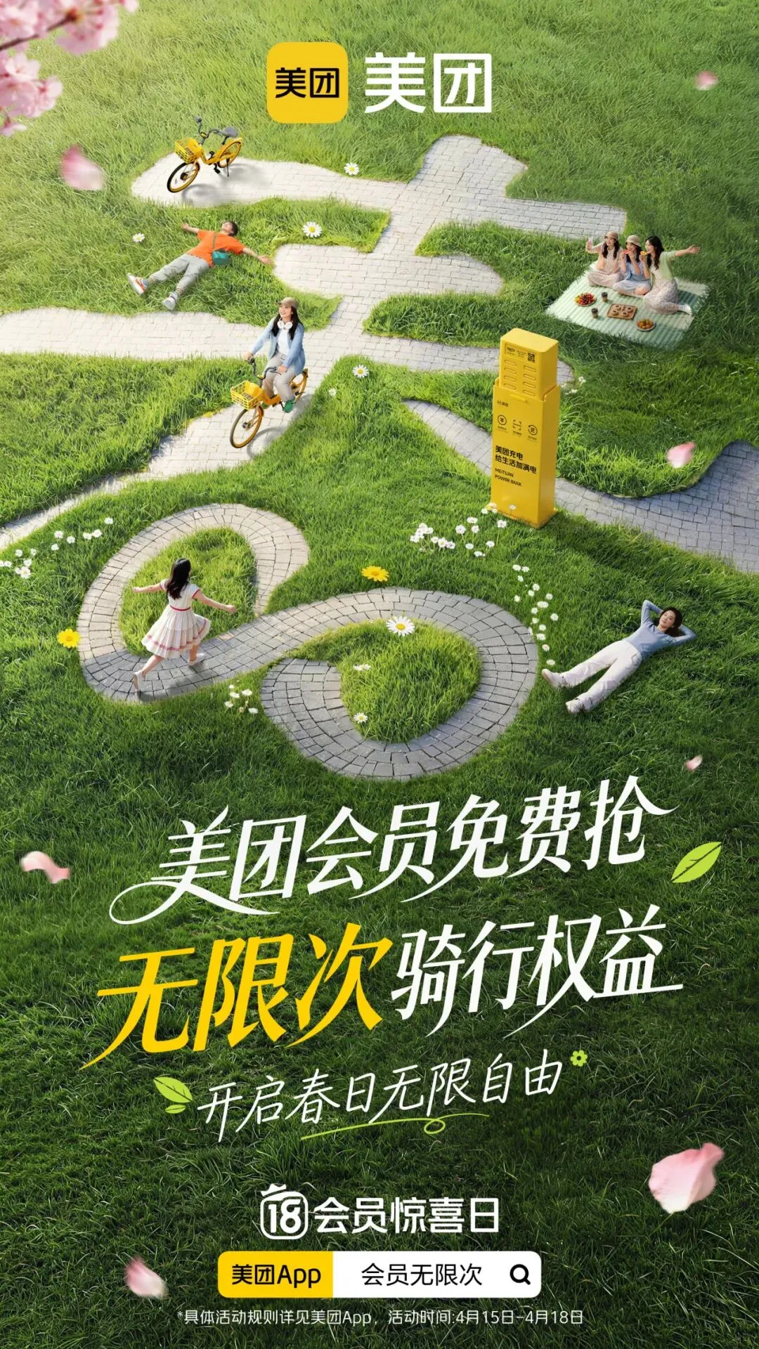 4月15日-4月18日,美团会员上美团App搜索【会员无限次】 ,即可享受:
