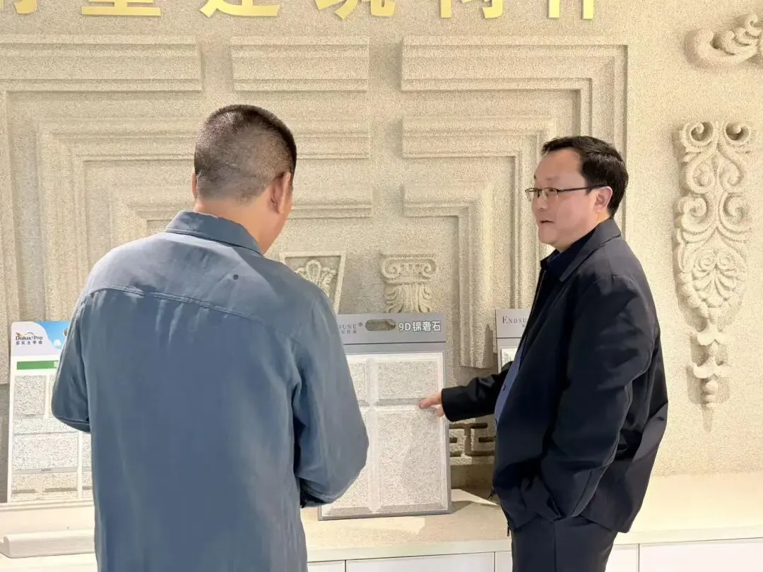 从材料性能到施工工艺,从设计理念到品质管控,君厚建筑展现了其在建筑装饰领域的专业实力与创新精神。走访团成员实地参观了产品展示区,详细了解了各类建筑材料的性能特点与市场应用前景。大家围绕市场需求、合作机会等话题展开热烈讨论,在思维碰撞中寻找发展机遇。