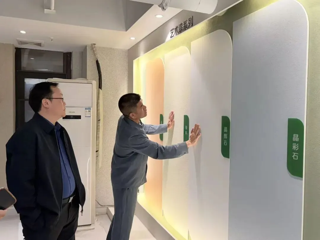 随后,走访团来到欧阳继海副会长的企业——湖南君厚建筑劳务有限公司。欧阳继海副会长与公司负责人详细介绍了企业在建筑劳务领域的专业优势与项目经验,重点展示了艺术涂料、新型建筑外材等特色产品与应用成果。