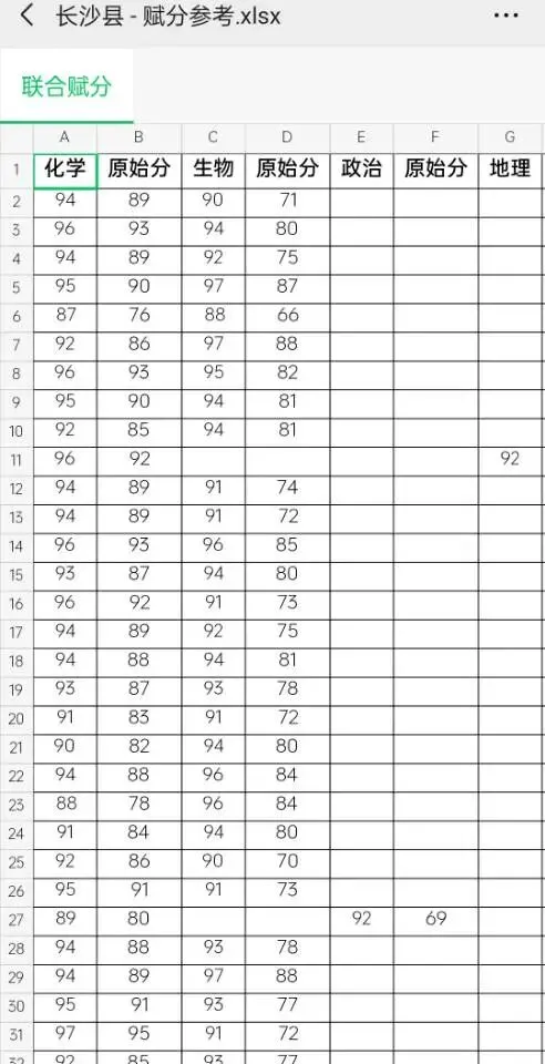 >长沙四县区市4月高三联考赋分参考表
