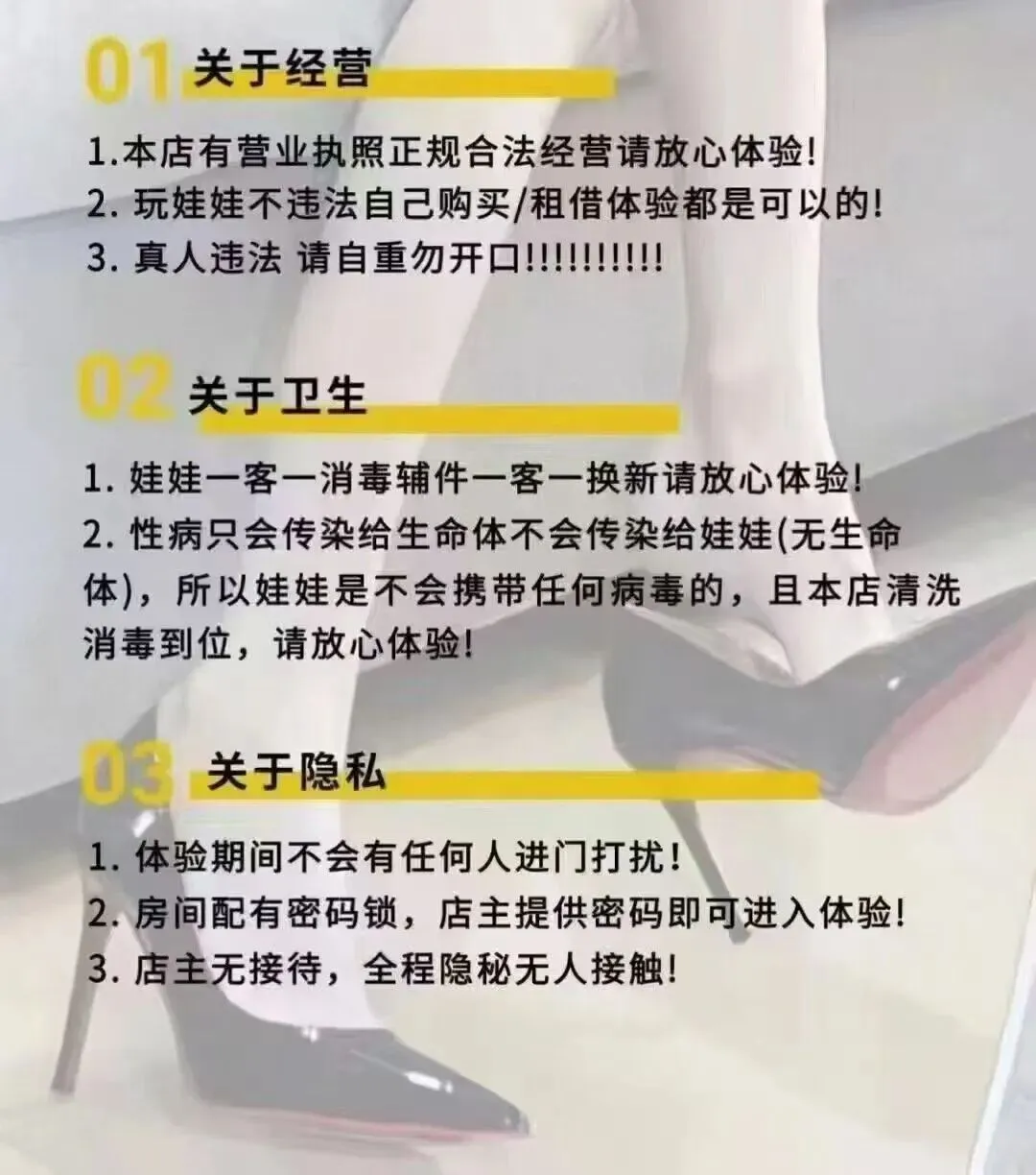 选店第一步,永远是看合规资质,正规门店都会主动出示营业执照,经营内容清清楚楚,坚决不接待未成年人,全程守规矩不碰违规项目,但凡证件不全、说话支支吾吾的,直接绕道走,千万别抱有侥幸心理。