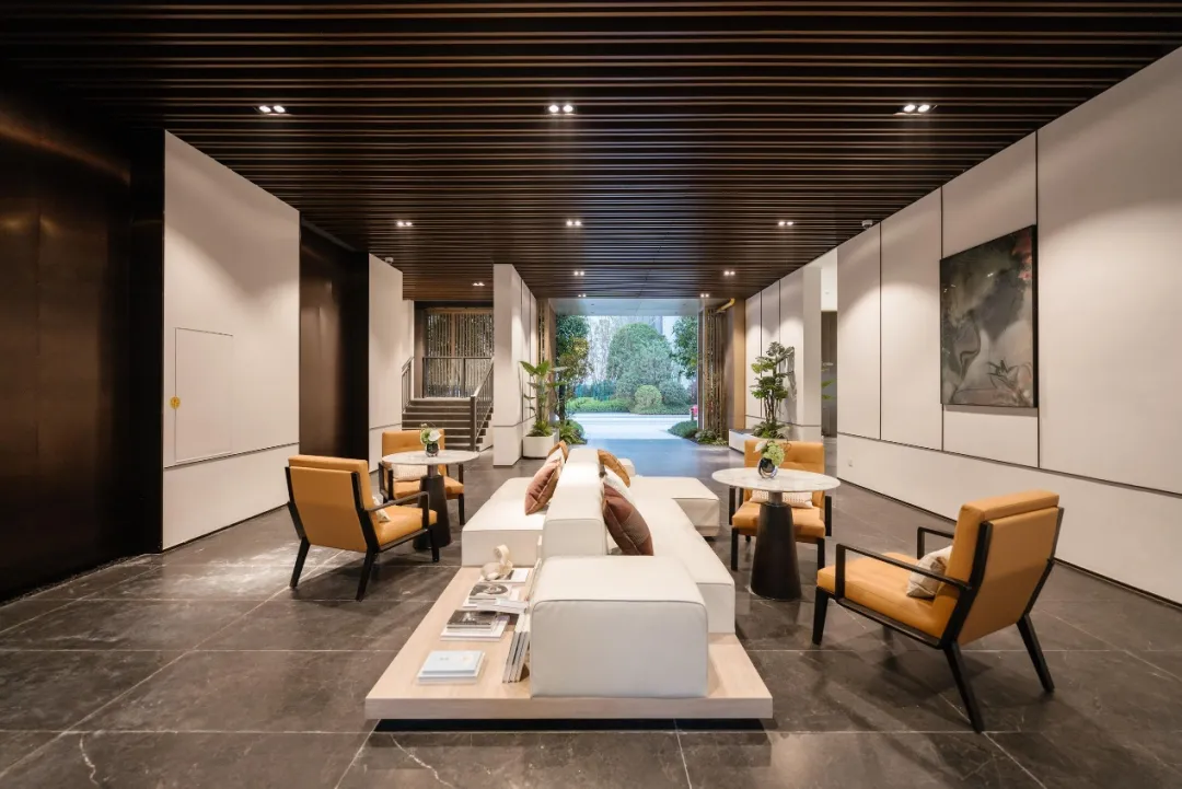 外立面采用玻璃幕墙+铝板,配备酒店式环岛落客+艺术水景+中央会客厅+主题架空层。