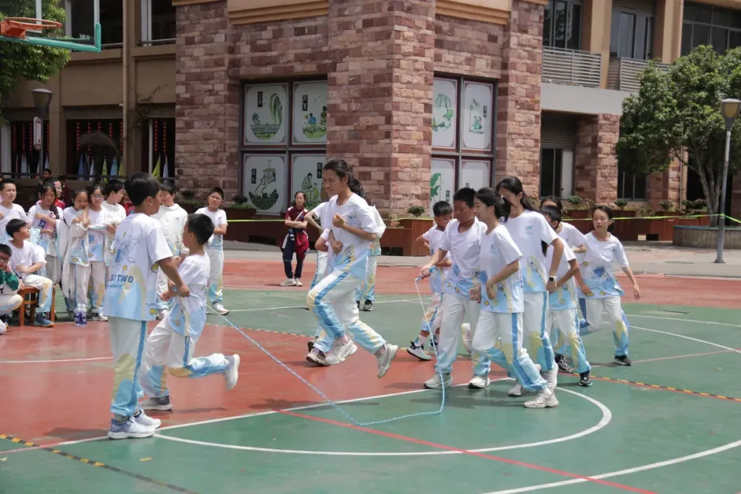 除武术、跆拳道两大特色项目外,学校广泛开展篮球、足球、啦啦操、跳绳等普及性体育运动,创新搭建“体育课+大课间+课后服务+班级联赛”四维联动体系,严格落实“人人有项目、班班有活动、周周有比赛”的育人目标,让运动融入每一位学生的日常校园生活。