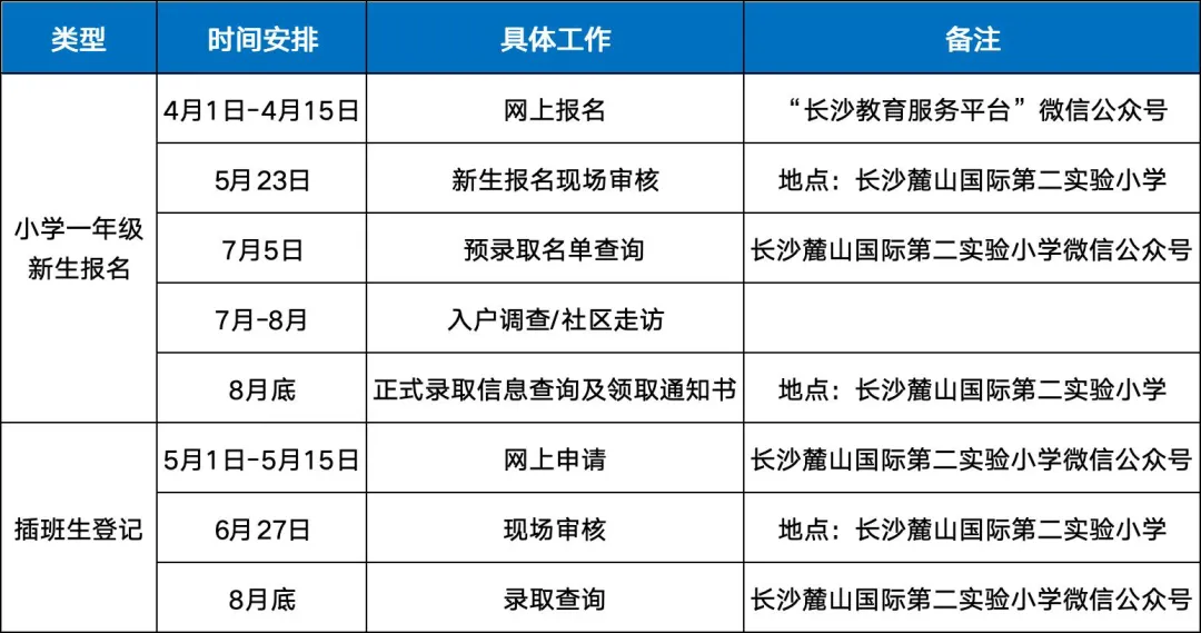 3.请密切关注“长沙麓山国际第二实验小学”微信公众号,所有招生信息都将在公众号及时公布。