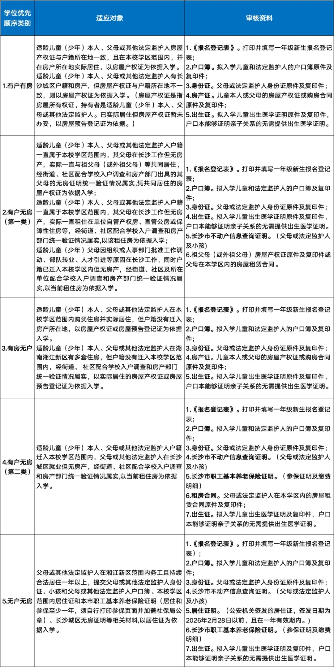 (1)因学校容量有限,只接纳本学区范围内符合条件的生源报名。对于没有空余学位的年级,学校不能完全接纳本学区适龄儿童入学的,由学校登记,湘江新区教育局基础教育处根据区域学位实际情况,按相对就近原则统筹调剂安排入学。