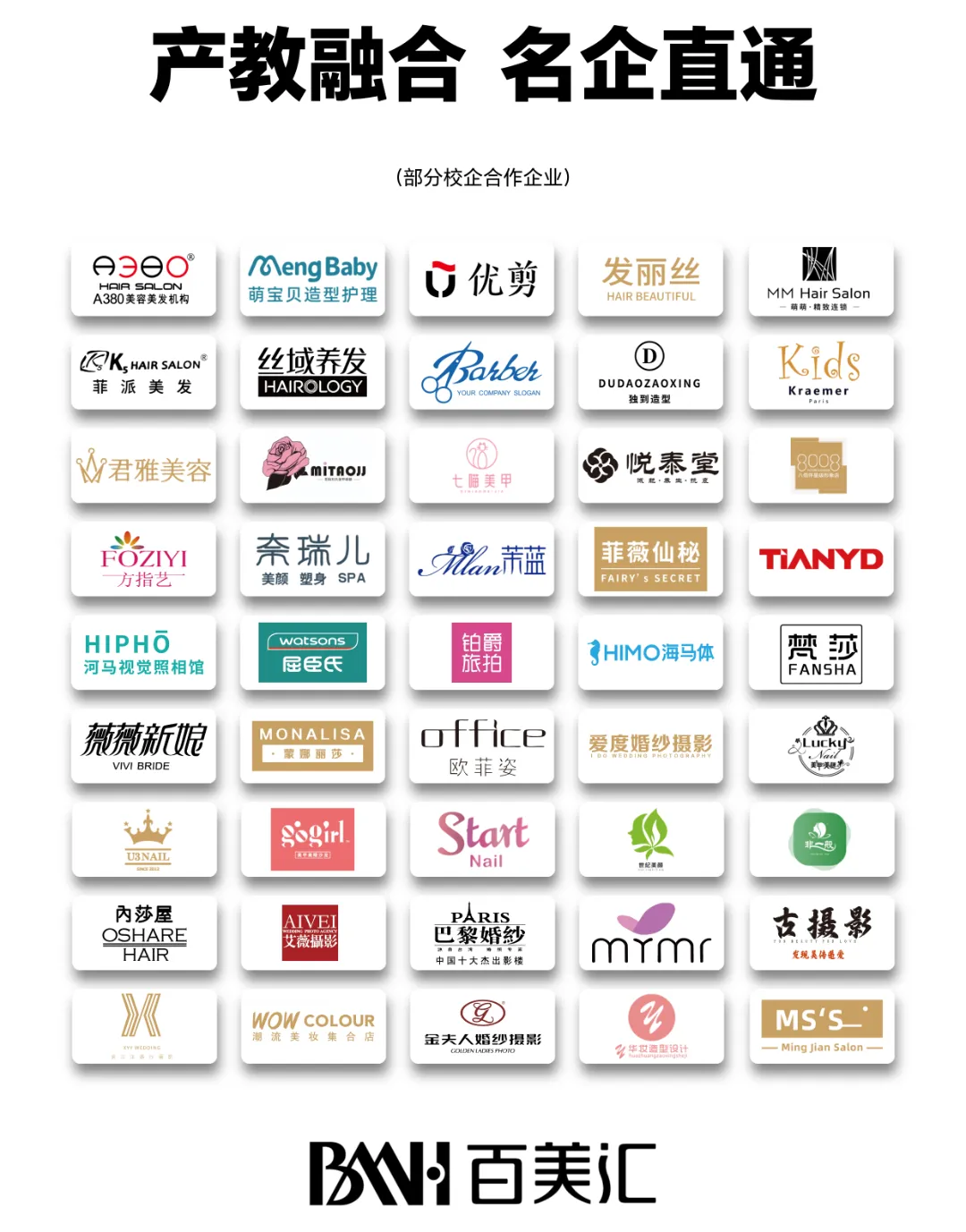 百美汇目前已与全国3000余家美业企业建立合作,涵盖美容、美发、化妆、美甲等全领域。每一次签约,都是在为学子的未来多铺一条路。