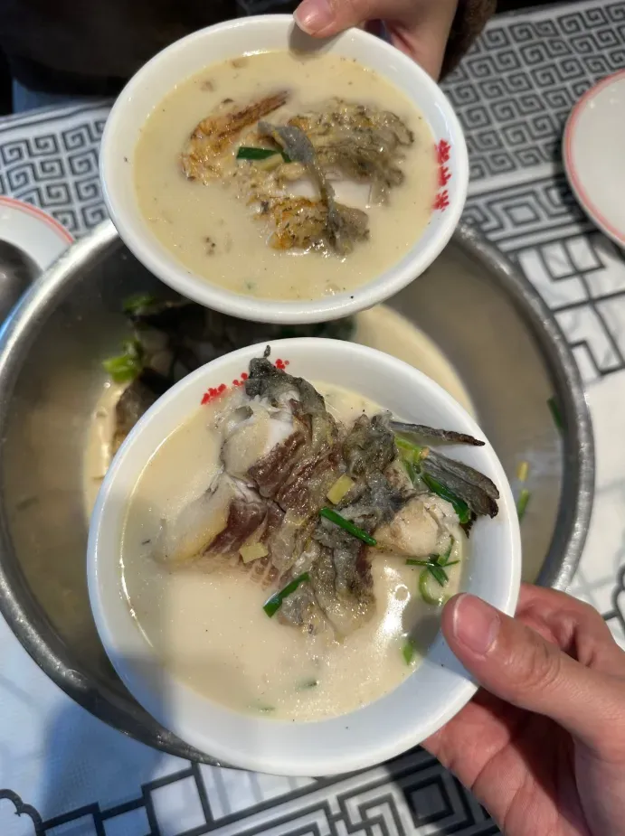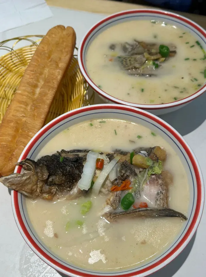 手掌那么大的鱼头,一点不含糊。 早上微冷的天气,喝一碗微辣暖胃的鱼汤,整个人都活过来了。