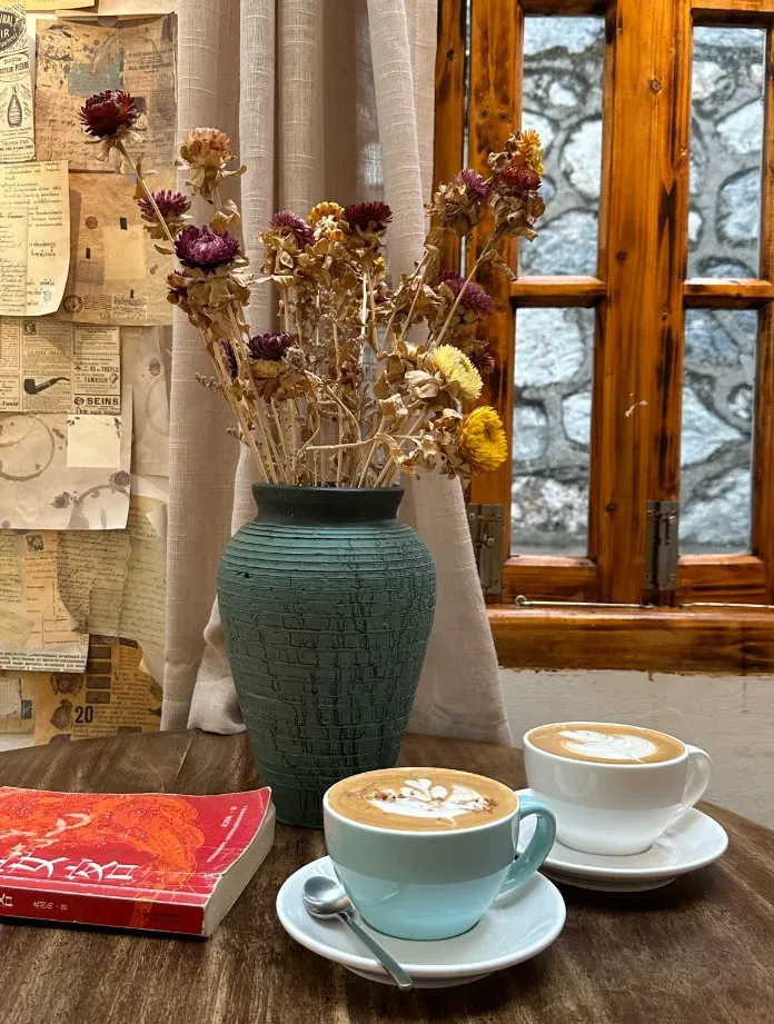 上坡后,在一家咖啡店坐了坐,顺便躲雨。非常庆幸,发现了一本好书。雨小后继续往巷子深处探索,下坡的位置拍照也很好看。