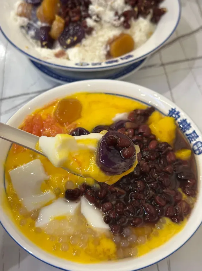第五家:国民地摊糖水。8块钱一大碗的杨枝甘露,用料也很足,还要什么自行车!