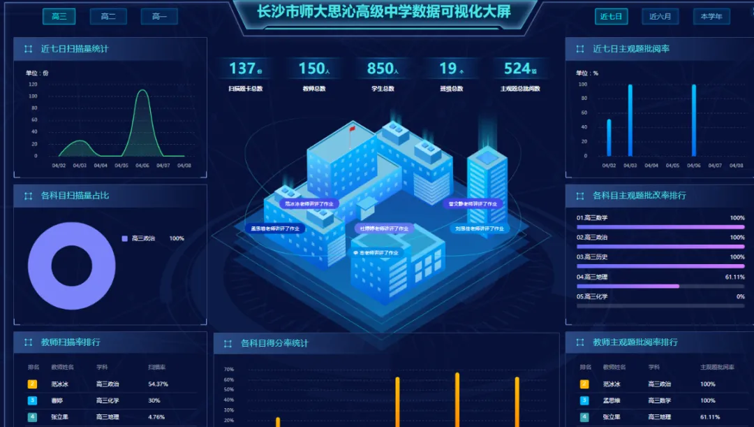 学校运用数字化手段开展日常教学,围绕课堂、作业、考试三大环节,构建 “讲、学、练、评、考、备” 一体化的精准智慧教学体系。