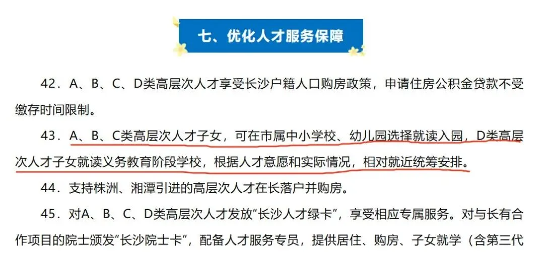 当时的这个政策引起非常大的争议,现在全面取消优待,可能是也对去年舆情事件的一个回应。核心目的十分明确:回归教育公平本质,让所有孩子站在同一起跑线上。教育作为最基础的公共资源,均等化是民生底线,取消差异化优待,能有效减少资源倾斜带来的差距,让入学机会更公平、教育环境更纯粹。高层次人才想要100%上优质学校,基本只有通过买学位房才能实现!这类人购买力往往比较强, 而且重视孩子的教育,无疑会加大头部学位房的需求!根据公开信息,截至2025年11月,长沙市高层次人才数量情况如下:累计认定总数:长沙市分类认定高层次人才(A、B、C、D类)共计约4000人左右。这一数据包含历年认定批次,涵盖国际级顶尖人才、国家级领军人才、省市级领军人才和高级人才等层次。