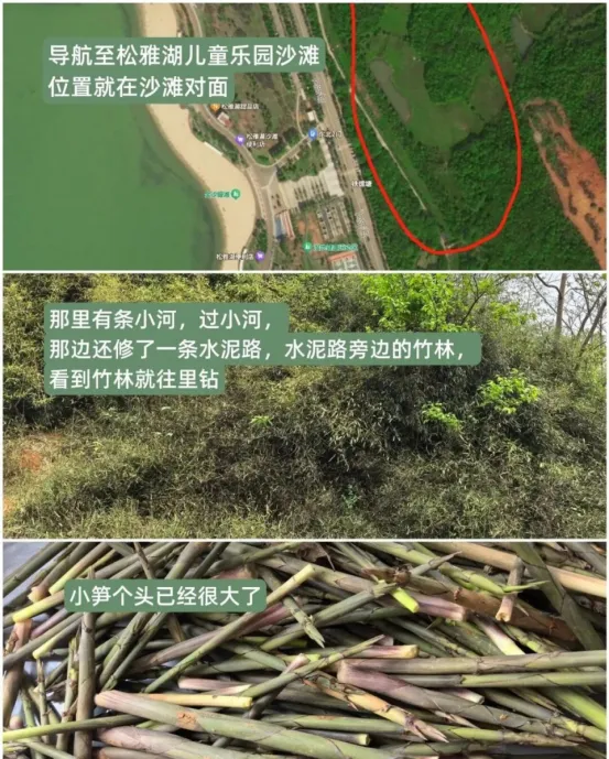 位置:导航松雅湖儿童乐园沙滩,有停车场,也有就停路边的(不怕抄牌的话),沙滩对面找小路进去,进去有一条小河,过小河就能看到竹林,竹林里面很多小笋!🎒第三站|雷锋大道·雷锋头像周边竹林(人文+野趣双解锁) 妥妥的望城本地宝藏挖笋点,位置好找、路线好走,带娃、带老人都无压力!就在雷锋大道的雷锋头像下方,以及马路对面,成片的大竹子郁郁葱葱,笋子藏在林间,找起来不费力。✅ 具体导航地址:湖南省长沙市望城区金山桥街道雷锋大道886号,直接搜地址就能到,不用绕路~ 🎒 第四站|雷锋大道·雷锋头像周边竹林(人文+野趣双解锁) 谷山作为望城人常去的“天然氧吧”,不仅风景清幽,挖笋体验也直接拉满,入口超多,三条路线任选,总有一条合你心意,还能解锁额外惊喜。👇留香园入口进(具体位置看下图),往里走不远就能看到成片竹林,笋子鲜嫩,周边环境清幽,适合喜欢安静挖笋的朋友。宝宁寺出发,往右边坡上走(真的就一点点路,一点不费腿),走到尽头右手边有个平坦的平台,抬头就是茂密竹叶,竹林深处藏着不少春笋,顺带还能感受宝宁寺的古朴韵味;🧺 必备装备