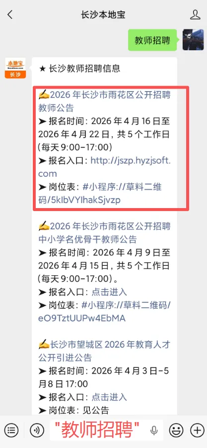 在【长沙本地宝】公众号对话框发送关键词: