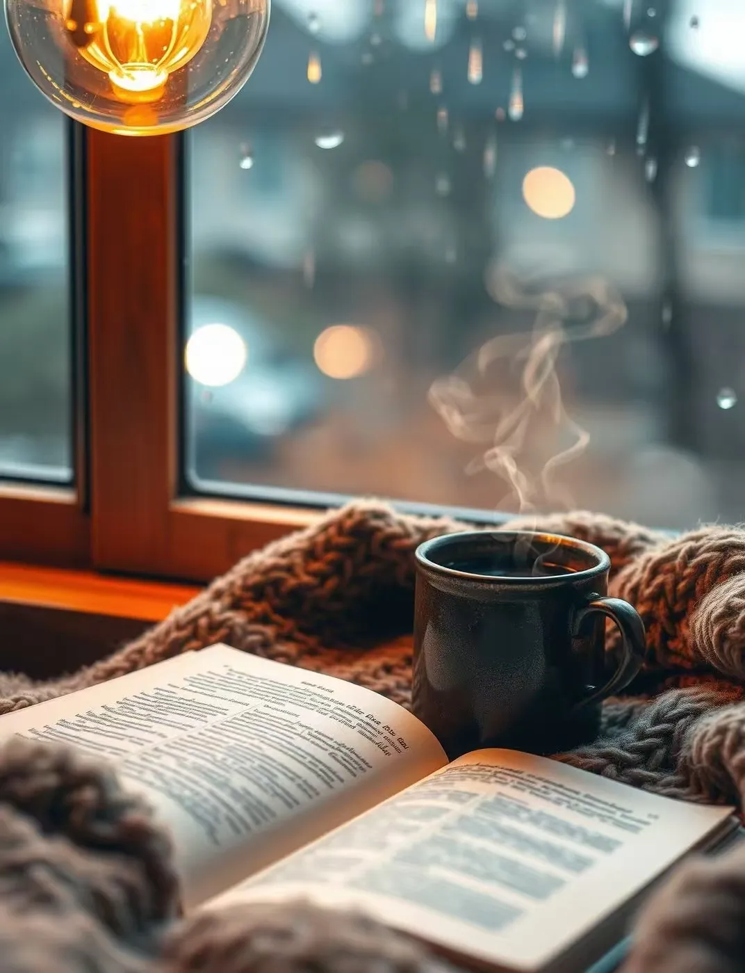 放上台灯、闲书、热饮