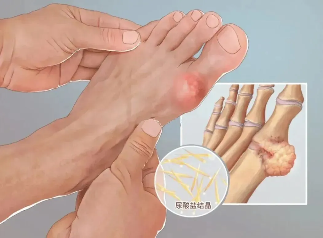 真性痛风有非常典型的首发位置——大脚趾的第一跖趾关节。约90%的患者第一次发作时都是这里剧痛,后续也可能累及踝关节、足背、膝关节等。假性痛风则很少侵犯大脚趾,它的“偏爱”是膝关节,其次是腕关节、肩关节、髋关节等大关节。如果你膝盖突然红肿剧痛,但大脚趾安然无恙,要优先怀疑假性痛风。