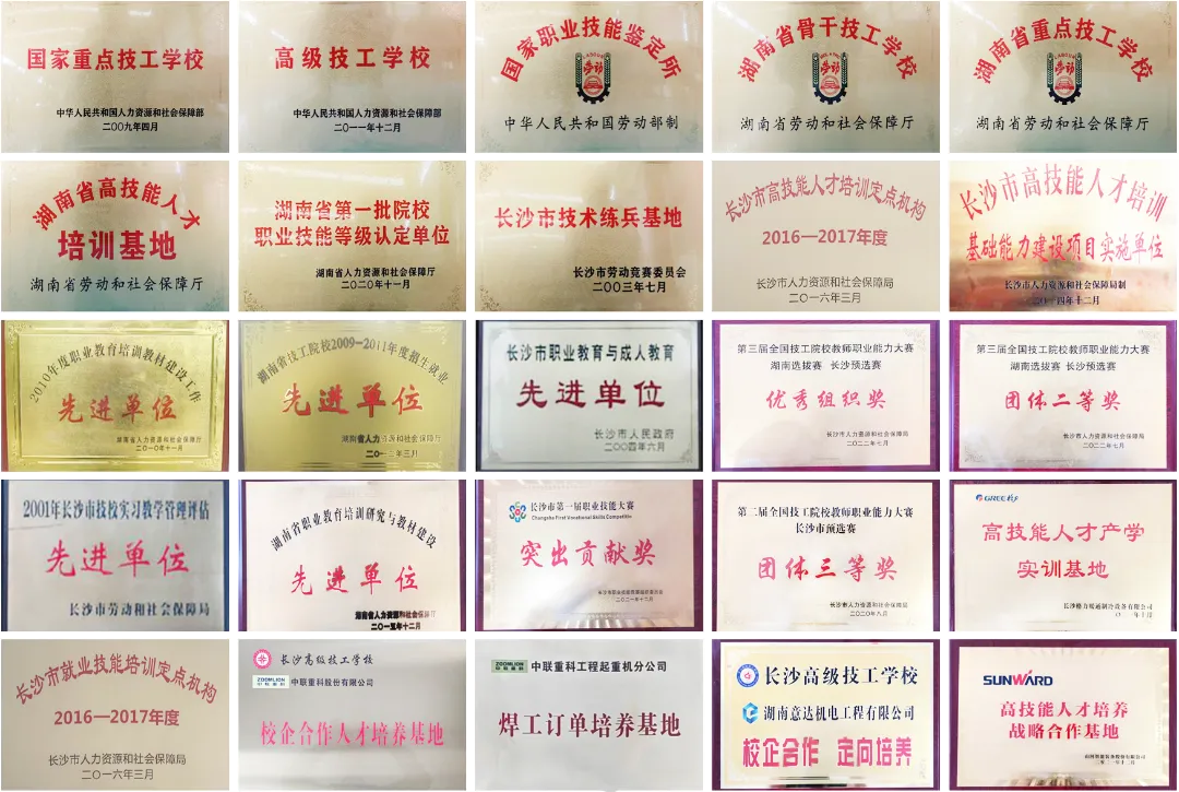 学校先后荣获省、市 “职业教育培训先进单位”、“职业教育培训研究与教材建设先进单位”、“职业技能鉴定先进单位”、长沙市第一、二届职业技能大赛“突出贡献奖”等众多表彰和荣誉。