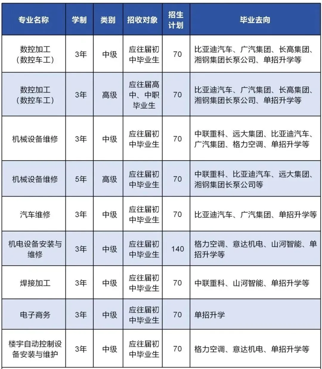 报名方式:应、往届初高中毕业生可凭毕业证直接到校报名,也可通过电话、报名小程序等方式报名。(备注:长沙市应届初中毕业生实行网上报名录取,可直接到校咨询)