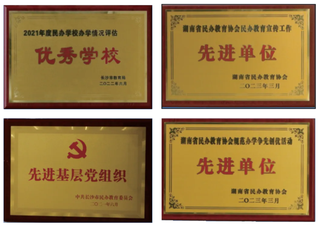 学校坚持立德树人,不断提升办学品质,2021年荣获长沙市中职学校首批达标校、长沙市优秀民办学校、长沙市民办教育党委“先进基层党组织”、长沙县教育阳光服务⼀级单位等荣誉。