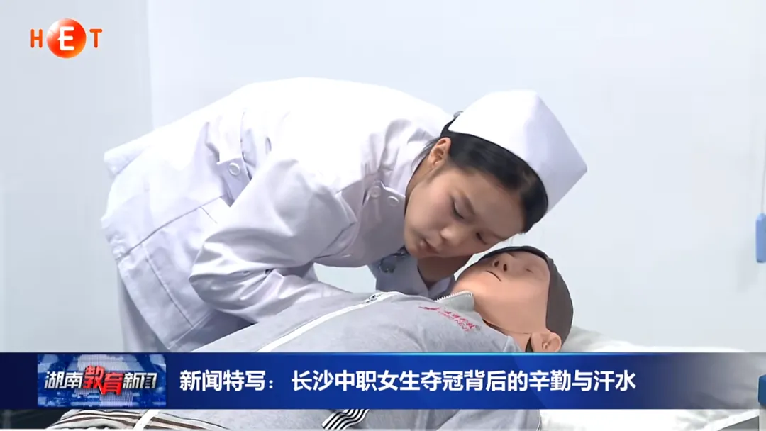 2023年11月16日,湖南教育电视台采访了我校获得2023年长株潭中职学校护理竞赛心肺复苏赛项一等奖的李娜同学。李娜同学在学习中,努力训练,积极克服困难,掌握了娴熟精准的操作技能。