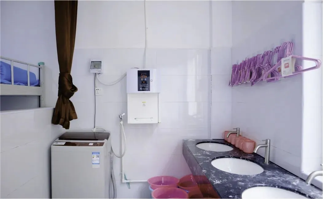 学校建有标准学⽣宿舍,设施设备⻬全。内设有盥洗间、独立卫⽣间、直饮⽔机等,每间宿舍都装有空调、洗衣机等⽣活设备,宿舍楼消防安全设施齐全,充分满⾜了校园安全以及学生的住宿需求。