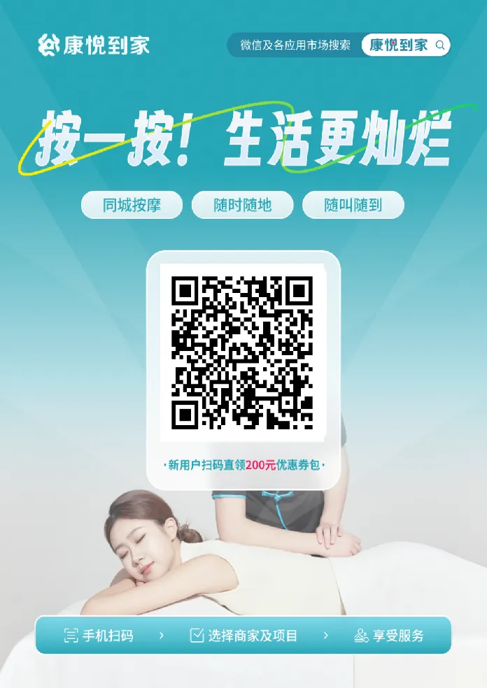 不用出门、不用找店、不用排队手机点一点,专属放松马上安排比点外卖还快,比打车还方便
