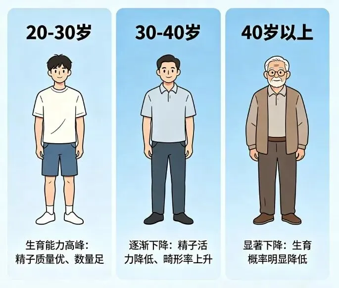 需要注意的是,男性18岁前生殖系统尚未发育成熟,精子质量较差,过早生育可能增加胎儿发育异常的风险;而35岁后,男性生育能力会逐渐下降,进入“生育衰退期”。