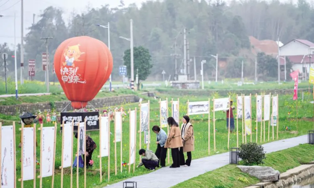 在长沙县开慧镇初恋美术馆,一场以“其实生活一直有味”为主题的画展,从“寻味、品味、回味”三个角度布展,4月以来吸引不少市民游客参观打卡。开慧镇乡村CEO 、策展人易丹以“柴米油盐的日常温暖”为素材,用诙谐通透的笔触画出生活的哲理与甘苦。艺术不再只是“象牙塔”里的风花雪月,而是变成了激活乡村的一把钥匙。它让游客愿意来,让村民有事做,让农产品有了品牌,让老房子有了新故事。