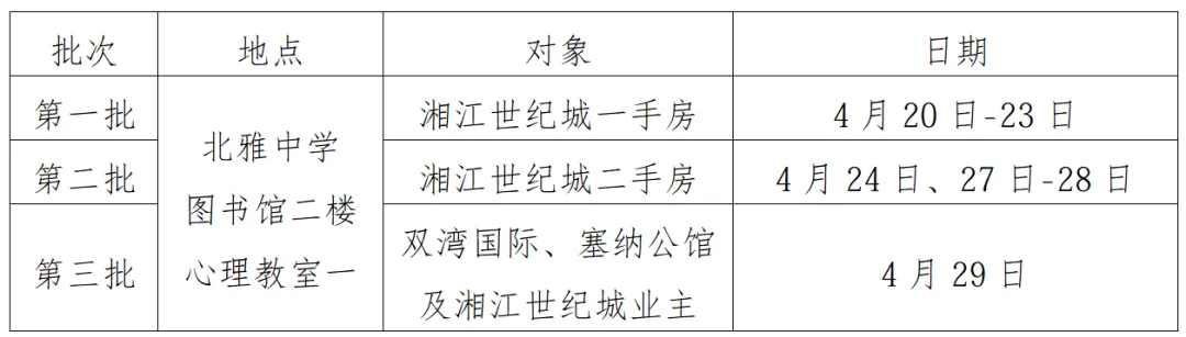 (1)预约通道将于4月19日9:00开启,家长可以根据楼盘选择4月20日-4月24日、4月27日-4月29日中任一时间段预约;