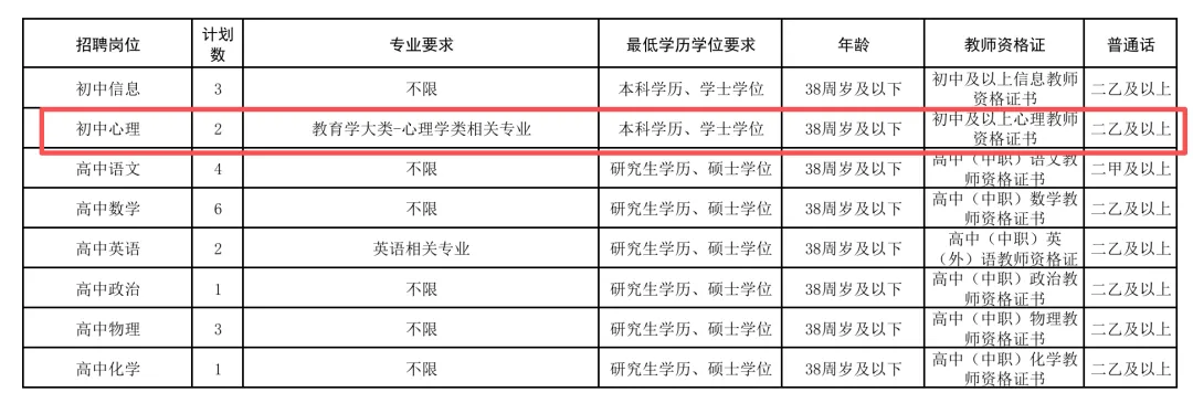 语文岗位要求具有二级甲等及以上等级证书,其他岗位要求具有二级乙等及以上等级证书。