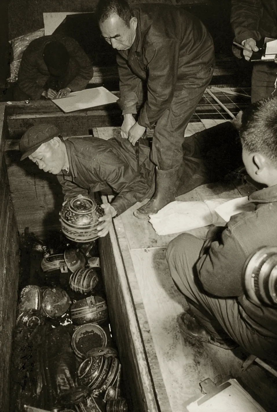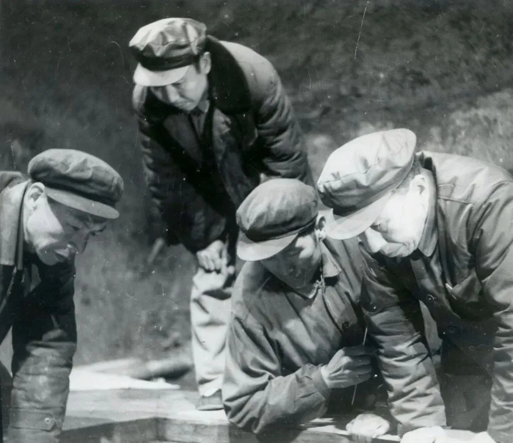 【图1】1972年马王堆一号墓的发掘现场(右起:夏鼐、王㐨、侯良、漆孝忠)