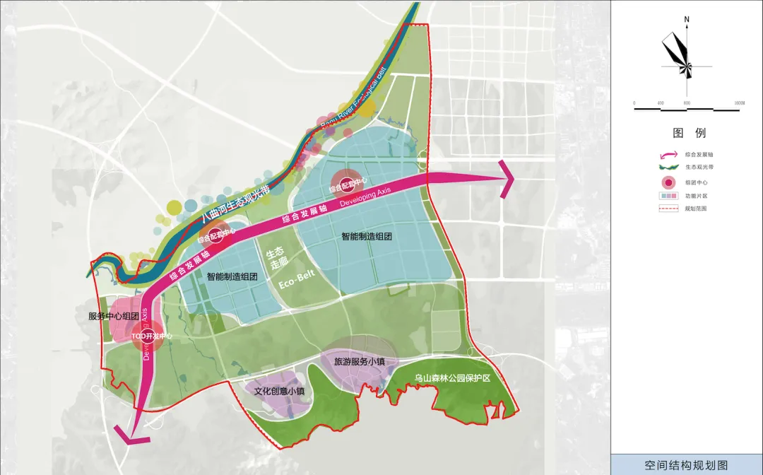 多组团:由两个智能制造组团、服务组团、旅游服务小镇和文化创意小镇构成。