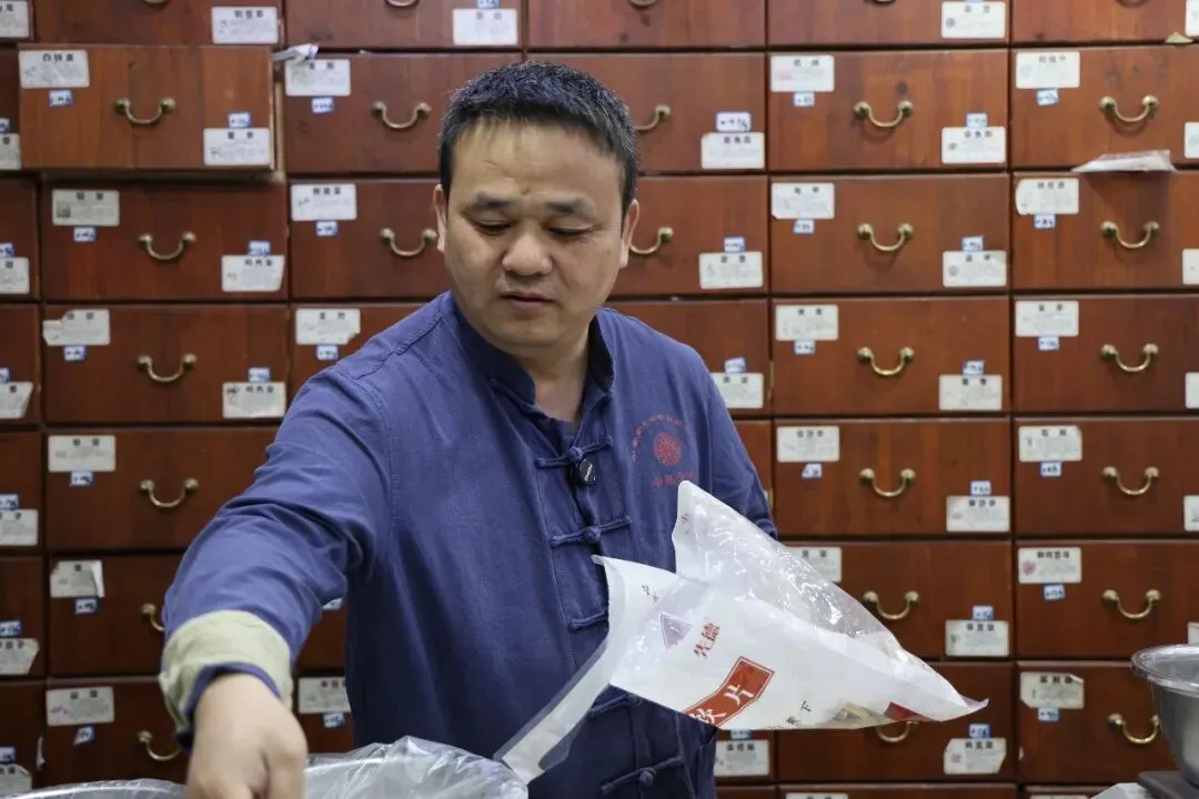 “这是一级精选党参。” 他指着柜里的药材一一介绍,“我们对药材的把控严之又严,比如蜈蚣必须 17 公分以上,去头去足;黄芪无硫,越嚼越甜;柴胡只用山西运城红柴胡;淮山只选河南铁棍怀山;砂仁必用广东阳春砂仁。”