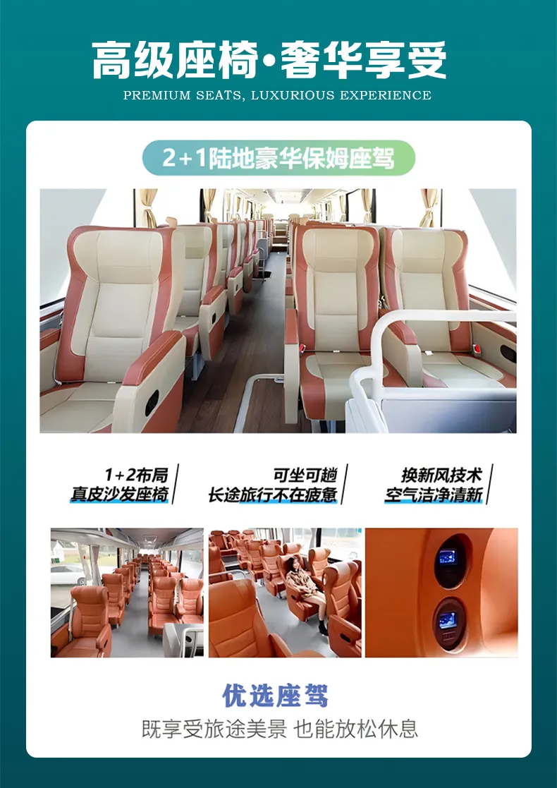 ※豪华 2+1VIP 旅游巴士:飞机头等舱特制座椅 ,如同陆地航班;全程高速!
