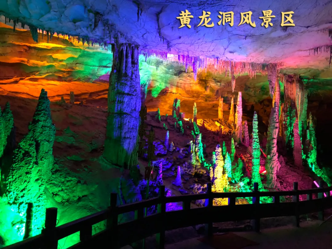 ※世界溶洞奇观黄龙洞4A:世界自然遗产、世界地质公园、高阔的洞天、幽深的暗河、密集的石笋而出名,喀斯特岩溶地貌