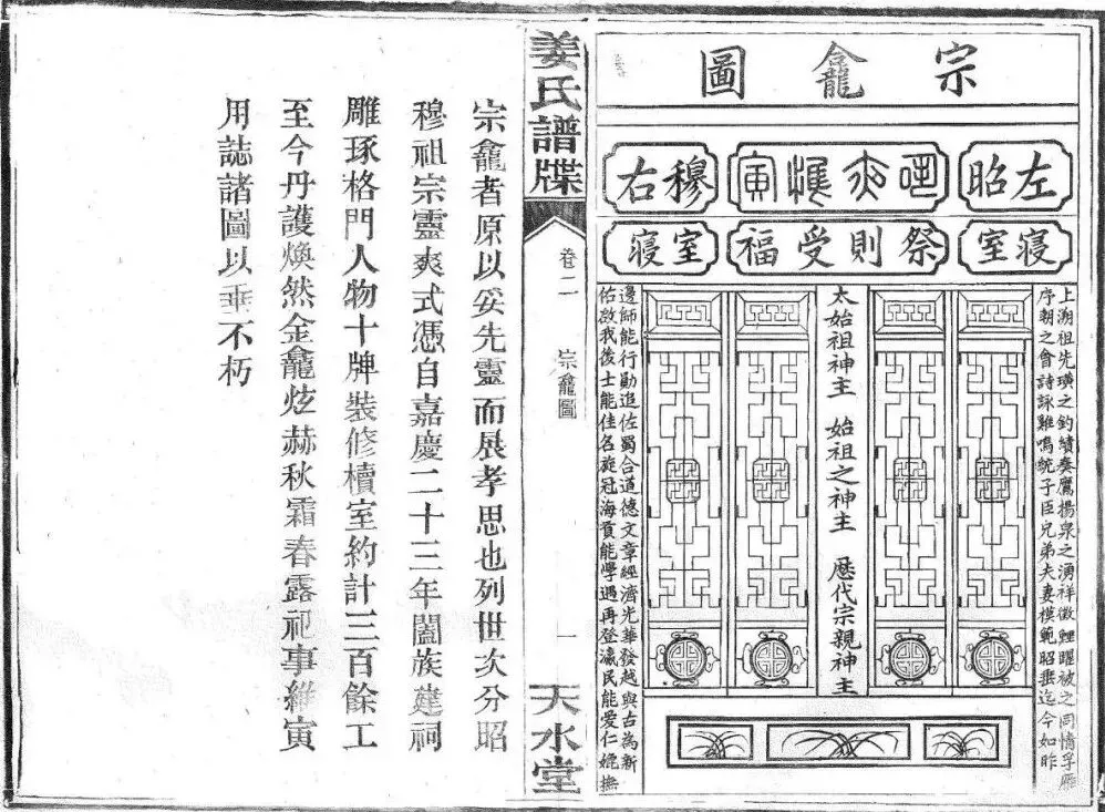 上溯祖先,璜之钓绩,奏鹰扬;泉之涌祥,徵鲤躍。被之同情,孚雁序;朝之会诗,詠鸡鸣。统子臣、兄弟、夫妻,模范昭垂,迄今如昨。