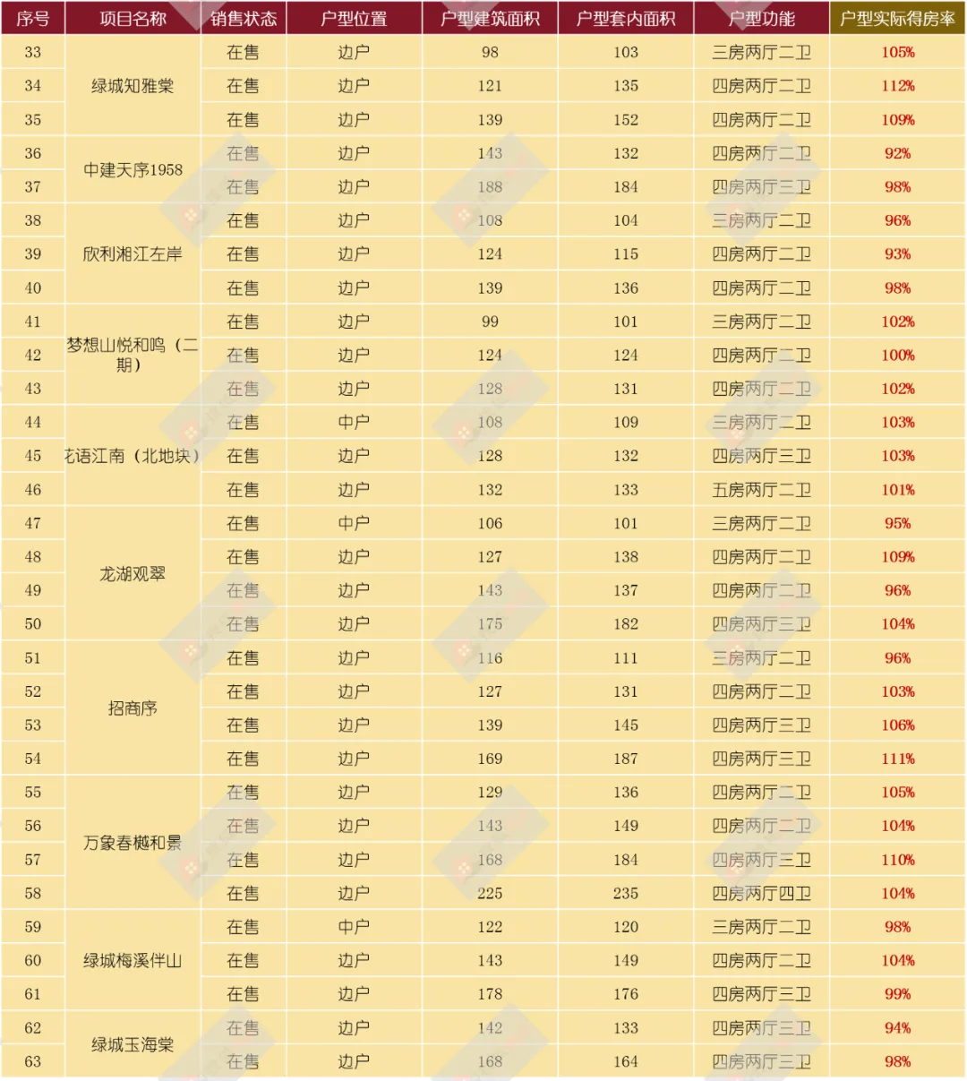 近期,我们对长沙102个新规户型得房率进行了统计,数据如下:
